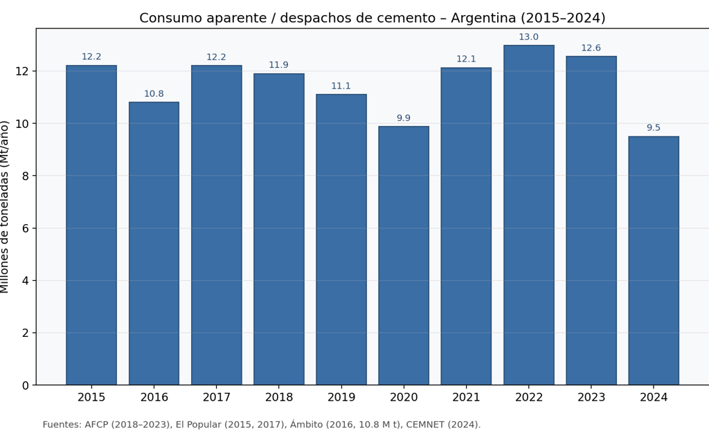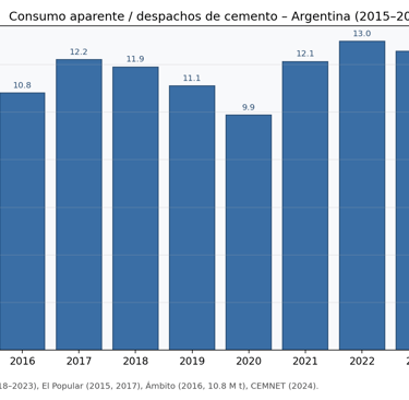 Argentina: La Asociación de Fabricantes de Cemento Portland publica mensualmente despachos como indicador adelantado de la construcción.