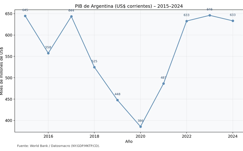 Entre 2022 y 2024 parece estable (633–646 mil millones US$), pero esto no refleja la caída real en actividad física.